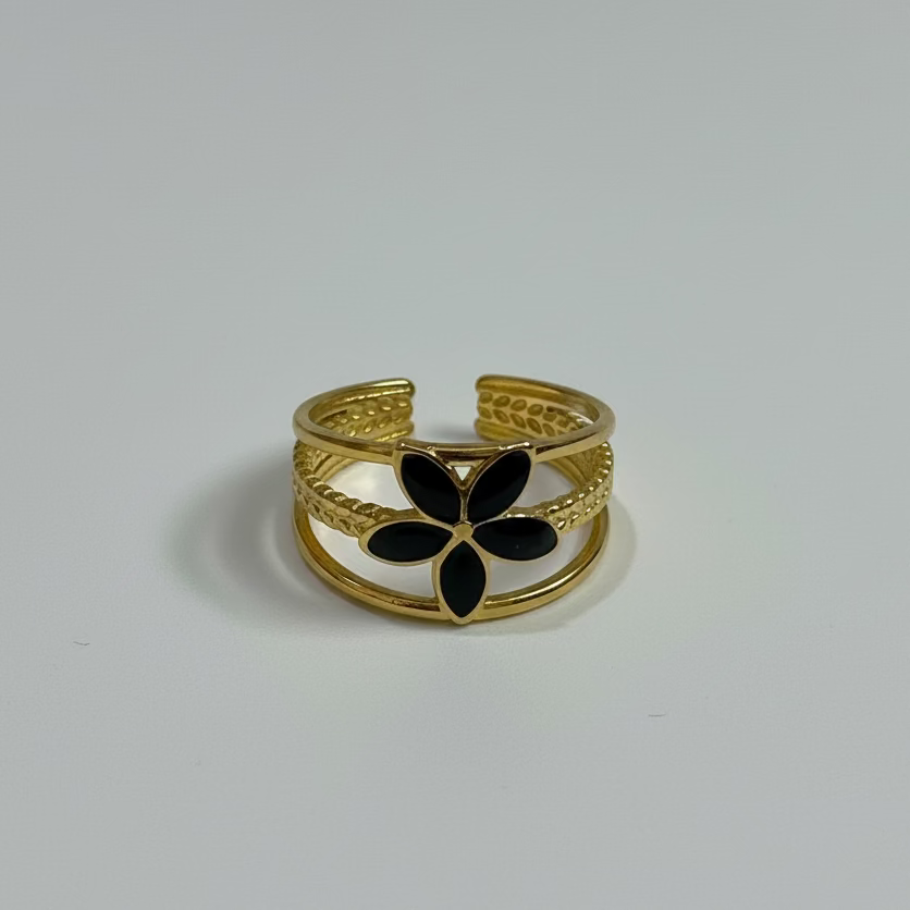 Black Enamel Flower Ring